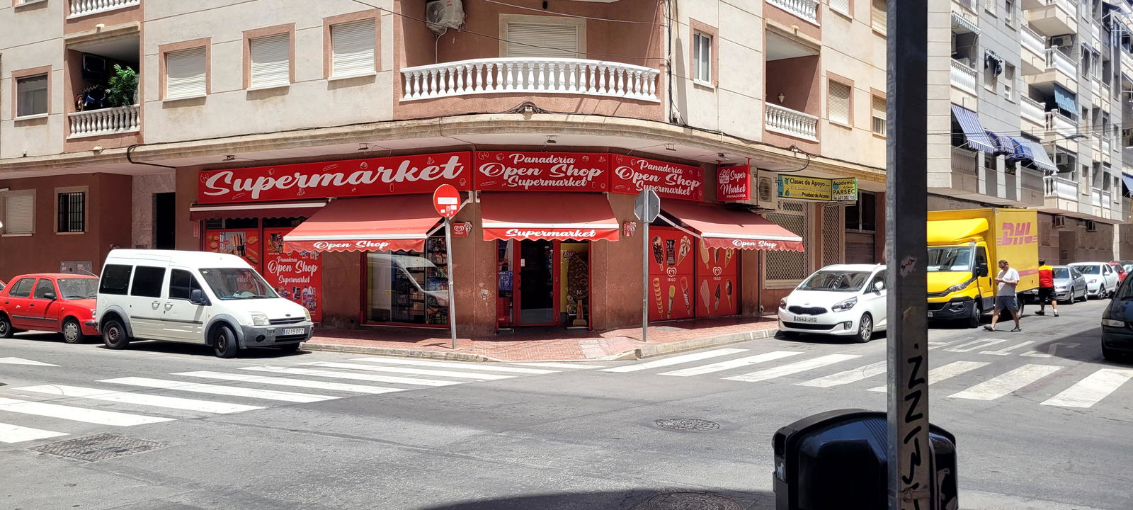 Grote supermarkt om de hoek.